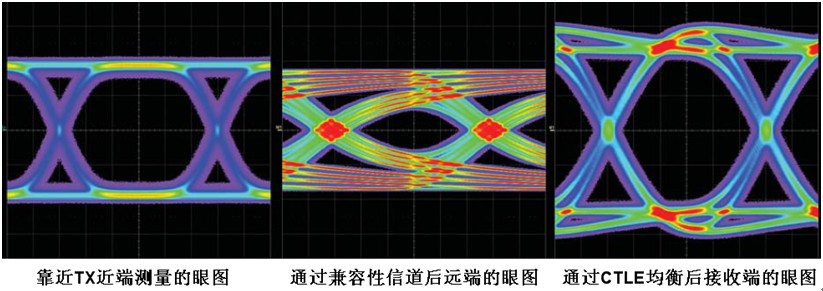 圖6:USB3.0的Transmitter測試在近端、遠(yuǎn)端和均衡后的眼圖對比
