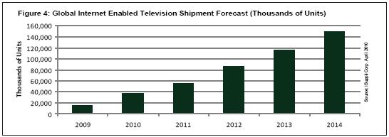 同樣,隨著品牌廠商努力延緩價(jià)格下跌速度和吸引消費(fèi)者來(lái)更換其原有的老式平板電視,未來(lái)幾年對(duì)于IETV的推廣活動(dòng)將會(huì)增強(qiáng)。iSuppli公司預(yù)測(cè),2014年IETV市場(chǎng)將從2009年的1470萬(wàn)臺(tái)增長(zhǎng)到1.49億臺(tái),復(fù)合年度增長(zhǎng)率為58.9%。