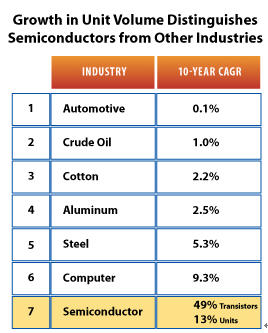 半導體業(yè)在數量上的增長與其它工業(yè)不同