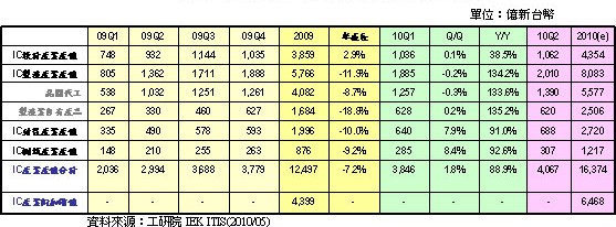 2010年第一季度臺灣IC產(chǎn)業(yè)產(chǎn)值統(tǒng)計與預(yù)估
