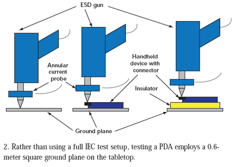 這樣的測(cè)試環(huán)境必然能實(shí)現(xiàn)可重復(fù)的結(jié)果。首先,將被測(cè)設(shè)備(EUT)放在絕緣表面上,然后從不同的方向?qū)UT施加沖擊。例如,給導(dǎo)電表面施加接觸放電,這些表面包括所有金屬外殼和連接器的接地金屬殼。也可以向四周絕緣表面進(jìn)行空氣放電,并將重點(diǎn)放在可能的ESD路徑上,比如設(shè)備外殼中的縫隙以及所有通風(fēng)孔及鍵盤(pán)。