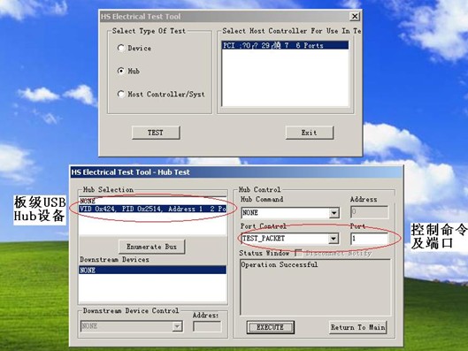 (1)原來我們采用的方案只支持一個USB 主機接口,所以在片上只集成一個USB 主機 Controller,測試命令也是基于主機控制器類型的。而我們的板級應(yīng)用是采用了一個USB Hub與主機 Controller中繼來實現(xiàn)多端口應(yīng)用的擴展,根本無法進行Hub Down Stream Facing Port的測試。