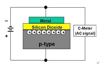 圖1.P型襯底上形成的MOSCAP結(jié)構(gòu)的C-V測(cè)量電路