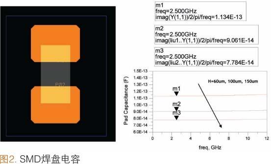 雖然01005SMD電容已面市一段時(shí)間,但是因?yàn)樵r(jià)格和組裝成本較高,并沒有成為RFSiP的普遍選擇。我們對帶有焊盤分布和互連線的0201SMD電容進(jìn)行了研究。
