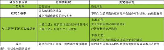 最后,如果硅錠生長和線切割操作之間的生產線平衡無法維持,總體硅片生產力也會下降。生產更多可制成硅片的硅錠材料可能會增加生產能力和爐子的利用率,但如果線切割操作無法處理增加后的材料或波形因數,就可能會出現在制品(WIP)瓶頸或降低線鋸利用率,從而導致硅片生產運營的總體生產力下降。影響硅錠生長的因素分析見表1。
