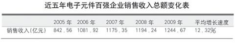 在本屆元件百強當(dāng)中,有33家企業(yè)2009年的銷售收入超過10億元,比上屆增加3家;有6家企業(yè)超過50億元,與上屆持平。