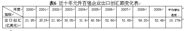 從第14屆元件百?gòu)?qiáng)到第23屆元件百?gòu)?qiáng)的十年間,元件百?gòu)?qiáng)出口創(chuàng)匯額增長(zhǎng)了2.4倍,年平均增長(zhǎng)率達(dá)到10.17%(見(jiàn)表6,圖二)。