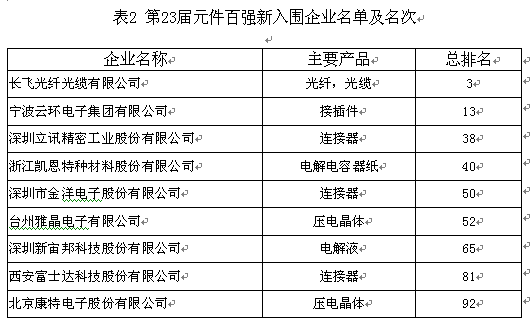 一、元件百?gòu)?qiáng)榜單起伏不定,新上榜企業(yè)表現(xiàn)搶眼