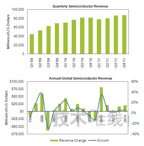 iSuppli從正面否定了對(duì)于此次快速增長(zhǎng)所擔(dān)心的“泡沫”和“二次探底”。關(guān)于泡沫問(wèn)題,有觀點(diǎn)認(rèn)為,此前曾創(chuàng)下歷史最高增長(zhǎng)率的2000年出現(xiàn)了需求泡沫,所以此次的增長(zhǎng)會(huì)不會(huì)也是泡沫。但是,iSuppli指出,2000年的增長(zhǎng)是繼1999年經(jīng)濟(jì)繁榮之后的產(chǎn)物,而此次增長(zhǎng)的背景卻是經(jīng)濟(jì)形勢(shì)從2009年以前的經(jīng)濟(jì)低迷期開(kāi)始的復(fù)蘇,因此這兩種情況“在循環(huán)本質(zhì)上完全不同”。關(guān)于二次探底,iSuppli高級(jí)副總裁戴利·福特(Dale Ford)表示,“我不同意二次探底將要到來(lái)的觀點(diǎn)”。他認(rèn)為,從2010年下半年開(kāi)始,2010年半導(dǎo)體市場(chǎng)將恢復(fù)到通常模式。也就是說(shuō),2010年第二季度將環(huán)比增加8.2%,達(dá)到峰值,第三季度將環(huán)比增加6.7%、第四季度將環(huán)比增加0.4%,出現(xiàn)減速,進(jìn)入2011年后,由于通常的季節(jié)因素,將轉(zhuǎn)為環(huán)比負(fù)增長(zhǎng)。iSuppli預(yù)測(cè),回到這種標(biāo)準(zhǔn)增長(zhǎng)模式后,2011年的半導(dǎo)體市場(chǎng)將增長(zhǎng)7%。