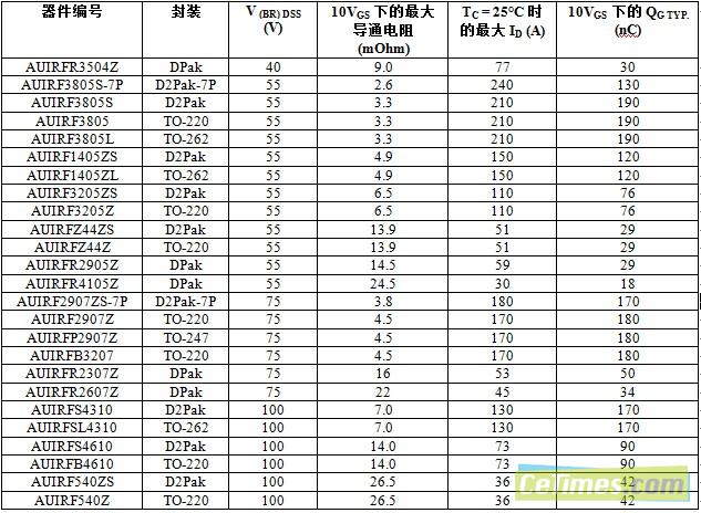 IR拓展低導(dǎo)通電阻汽車(chē)用功率MOSFET系列