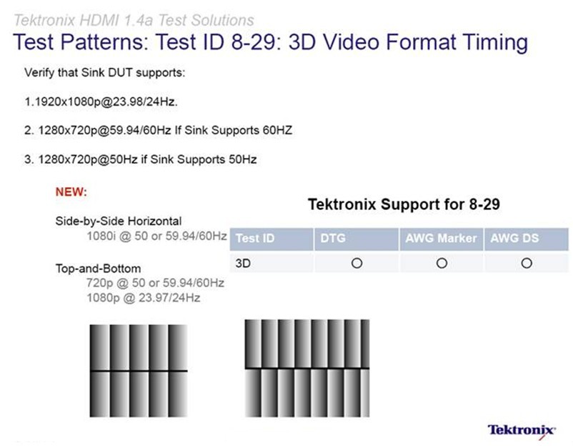 圖5:泰克參與制定了HDMI1.4/1.4a關(guān)于強制3D視頻格式的一致性測試標準。