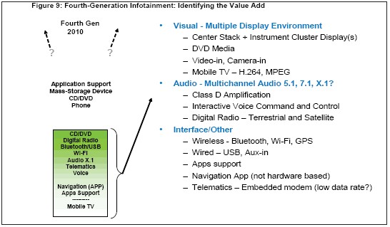 據(jù)iSuppli公司,第四代設(shè)計(jì)架構(gòu)今年開始得到采用,正在改變汽車信息娛樂領(lǐng)域的供應(yīng)與消費(fèi)模式,消費(fèi)者對汽車電子的影響力比以前更大。