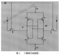 假設準備往圖2的6T存儲單元寫入“1”,先將某一組地址值輸入到行、列譯碼器中,選中特定的單元,然后使寫使能信號WE有效,將要寫入的數據“1”通過寫入電路變成“1”和“0”后分別加到選中單元的兩條位線BL,BLB上,此時選中單元的WL=1,晶體管N0,N5打開,把BL,BLB上的信號分別送到Q,QB點,從而使Q=1,QB=0,這樣數據“1”就被鎖存在晶體管P2,P3,N3,N4構成的鎖存器中。寫入數據“0”的過程類似。