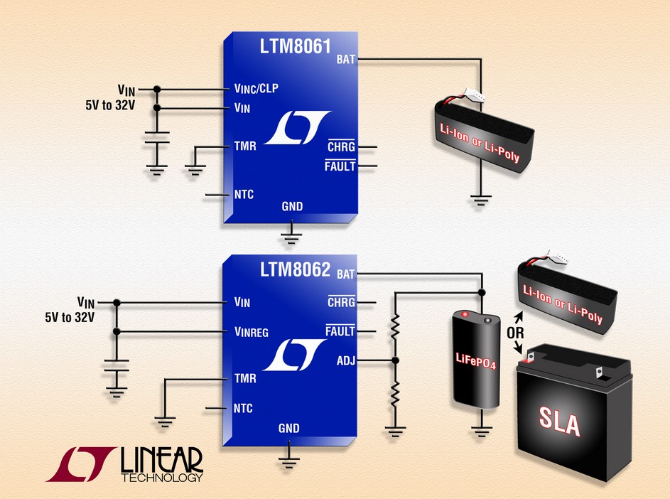 - LTM8062 可主動地管理輸出充電電流