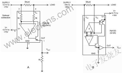 [page]圖3兩大類電流分路監(jiān)控器包括:A)電流輸出型分路監(jiān)控器和B)電壓輸出型分路監(jiān)控器車載應用的一般性技術要求