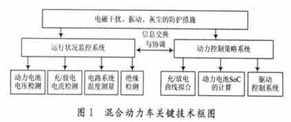 實(shí)現(xiàn)混合動力車共有三個關(guān)鍵因素:能夠?qū)ζ囘\(yùn)行狀態(tài)詳細(xì)監(jiān)控的系統(tǒng);分析監(jiān)控系統(tǒng)所獲取的信息,并發(fā)出相應(yīng)的控制命令;相比一般電子系統(tǒng),混合動力車電子控制系統(tǒng)工作在車內(nèi)非常惡劣的環(huán)境,電磁干擾、振動、灰塵等都會造成技術(shù)上的瓶頸,如圖1所示。