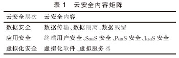 云安全架構(gòu)的一個關(guān)鍵特點是云服務(wù)提供商所在的等級越低,云服務(wù)用戶自己所要承擔(dān)的安全能力和管理職責(zé)就越多。下面對云計算安全領(lǐng)域中的數(shù)據(jù)安全、應(yīng)用安全和虛擬化安全等問題(見表1)的應(yīng)對策略和技術(shù)進(jìn)行重點闡述。