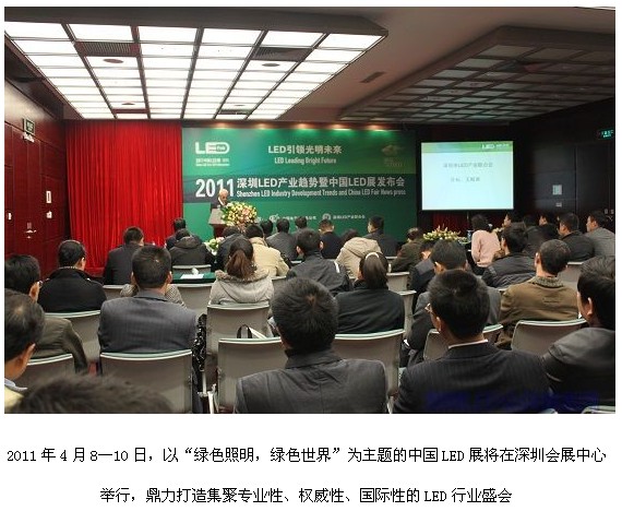 1月6日,主辦方中國電子器材總公司和深圳市LED產(chǎn)業(yè)聯(lián)合會召開新聞發(fā)布會,宣布華南地區(qū)第一個LED專業(yè)展覽會正式啟動,并將每年4月定為“深圳LED宣傳月”,讓市民了解和認知LED產(chǎn)品。