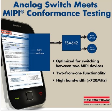 不同于現(xiàn)今使用一個(gè)并行數(shù)據(jù)接口的解決方案,F(xiàn)SA642針對(duì)兩個(gè)MIPI器件之間的切換進(jìn)行了優(yōu)化,如相機(jī)或者LCD顯示器以及板上多媒體應(yīng)用處理器(MAP),可讓設(shè)計(jì)人員實(shí)現(xiàn)其設(shè)計(jì)的差異化和定制化,同時(shí)提供了更大的靈活性。
