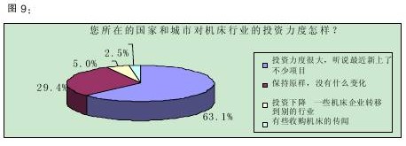在眾多的機床行業(yè)投資者中,政府充當(dāng)著一個重要角色。調(diào)查顯示,63.1%的受訪者認(rèn)為國家對機床行業(yè)的“投資力度很大”(詳見圖9)。