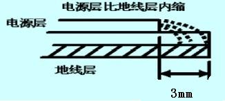 圖2 電源層比地線(xiàn)層內(nèi)縮示意圖