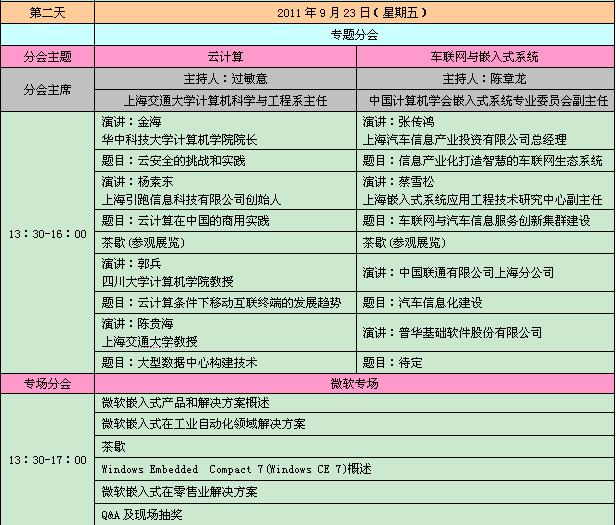 2011中國(guó)國(guó)際嵌入式大會(huì)暨展覽會(huì)日程表