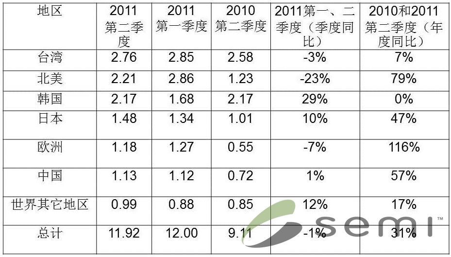- 2011年第二季全球半導(dǎo)體制造設(shè)備出貨額達119.2億美元
