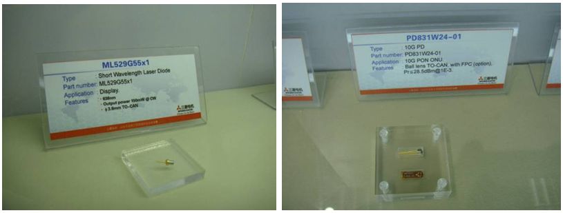 2011年9月6日至9月9日,第十三屆中國(guó)光電博覽會(huì)(CIOE 2011)在深圳會(huì)展中心隆重開(kāi)幕,許多高新技術(shù)在展會(huì)上爭(zhēng)奇斗艷,吸引無(wú)數(shù)眼球。三菱電機(jī)(Mitsubishi Electric)也攜10G PON器件,低功耗10Gbps EML TOSA,1.3μm 40Gbps EML模塊,100Gbps TOSA等光收發(fā)器件高調(diào)亮相光通信與激光紅外展館。