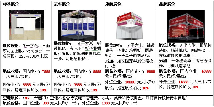 1、各種展位價格表