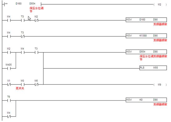3.2.3通訊程序:臺達SS PLC提供兩個通訊口。本文中,SS PLC的COM1口已與觸摸屏通訊,所以利用SS PLC的COM2 通訊口(此通訊口接口是RS485),支持MODBUS通訊便利指令,編通訊程序像編順序邏輯程序一樣簡單,讓對通訊底層不是很了解的人也能快速上手??焖倬帉慚ODBUS通訊程序,控制如臺達全系列產(chǎn)品,如變頻器、溫控器、伺服等產(chǎn)品。見圖10。
