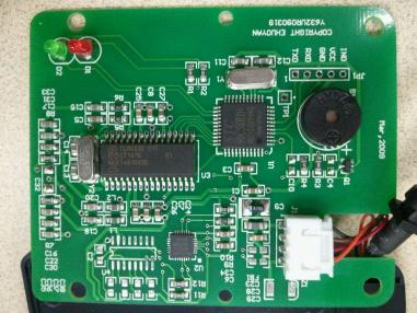 RFID讀寫器是一個(gè)包含了基帶微控制器、RF發(fā)射和接收模塊以及電源和控制總線的復(fù)雜的射頻嵌入式系統(tǒng)。基帶控制信號和系統(tǒng)內(nèi)部寄存器的狀態(tài)直接影響系統(tǒng)的工作狀態(tài)。以我們測試的讀寫器為例,NXP CLRC632讀寫控制芯片包含了 壓控振蕩器、鎖相電路、編碼、解碼、混頻和發(fā)射/接收功能,芯片的工作受到單片機(jī)芯片STC 90c58RD+的控制。