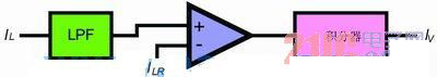要減少IOUT(CL)的下降,建議使用一個(gè)可變的IV來(lái)取代一個(gè)固定的IV。IV的變化取決于IL(RIPPLE)的平均值:即輸出電流IOUT。在電流限制模式下,假如IOUT(CL)由于tD而減少,那么IV將會(huì)增加,直至IOUT(CL)達(dá)到ILR參考值。這樣,IOUT(CL)將不會(huì)再受到tD的影響。優(yōu)化提案的框圖如圖3所示。當(dāng)中采用一個(gè)低通濾波器(LPF)來(lái)均化IL及其輸出,并且給出一個(gè)誤差放大器的ILR參考值。采用一個(gè)積分器,通過(guò)誤差放大器的輸出可以產(chǎn)生一個(gè)可變IV。結(jié)果,I可達(dá)到一個(gè)令I(lǐng)OUT(CL)與ILR相等的值,而IOUT(CL)也可脫離tD的影響。