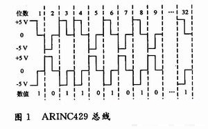 ARINCA29總線是一種單向廣播式數(shù)據(jù)總線,采用雙角屏蔽線傳輸信息,可由兩根獨立總線實現(xiàn)雙向傳輸,數(shù)據(jù)傳輸率為:高速傳輸?shù)奈凰俾蕿?00 Kb/s±1%,低速傳輸?shù)奈凰俾蕿?12.0~14.5)Kb/s±1%。ARINC429規(guī)定數(shù)據(jù)傳輸采用雙極性歸零制的三態(tài)碼方式,如圖1所示,即調(diào)制信號由“高”、“零”和“低”狀態(tài)組成的三電平狀態(tài)。雙極性歸零碼的基本信號波形中攜帶了位同步信息,位同步是由零狀態(tài)變至“高”或“低”狀態(tài)的這一狀態(tài)變化來識別。字同步是以傳輸周期間至少有四個位時的時間間隔為基準,緊跟該字間隔后要發(fā)送的第一位起點即為新字的起點。