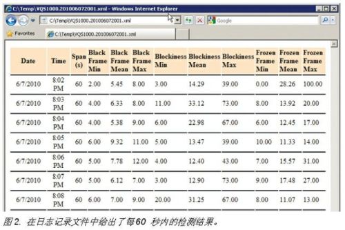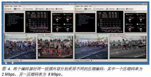 下面的例子是從交換機處將兩個多播流送入到VQS1000服務(wù)器。這兩個會話來自兩個不同的視頻編碼器,但看起來仍為同一實際視頻。其中第一個編碼器的編碼速率為2Mbps,而另一個編碼器的編碼速率為8Mbps。圖4表示的是VQS1000應(yīng)用程序?qū)蓚€會話同時測量的兩個拷貝。這兩項測量均是實時進行的,在圖4的并列顯示中給出了它們的測量結(jié)果。容易看出,碼率為2Mbps的視頻圖像質(zhì)量較差,有著較高的塊效應(yīng)讀數(shù),而碼率為8Mbps的視頻有著相對平緩的塊效應(yīng)數(shù)值,這和我們預(yù)期的結(jié)果是一致的。