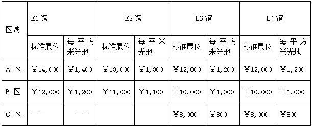 (A) 標(biāo)準(zhǔn)展位(每個(gè)標(biāo)準(zhǔn)展位為3米×3米=9平方米) 標(biāo)準(zhǔn)展位設(shè)施配備為:三面鋁合金圍板、滿鋪地毯、兩只射燈、兩把折椅,一張問(wèn)詢桌和一個(gè)220V/500W的電源插座,楣板上書中英文公司名稱。單個(gè)拐角位置展位費(fèi)增加10%
