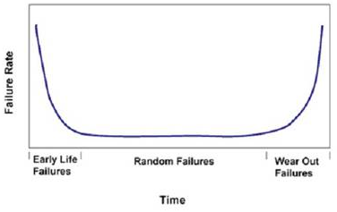 圖1“浴盆”形曲線顯示了半導體故障率隨時間變化的情況