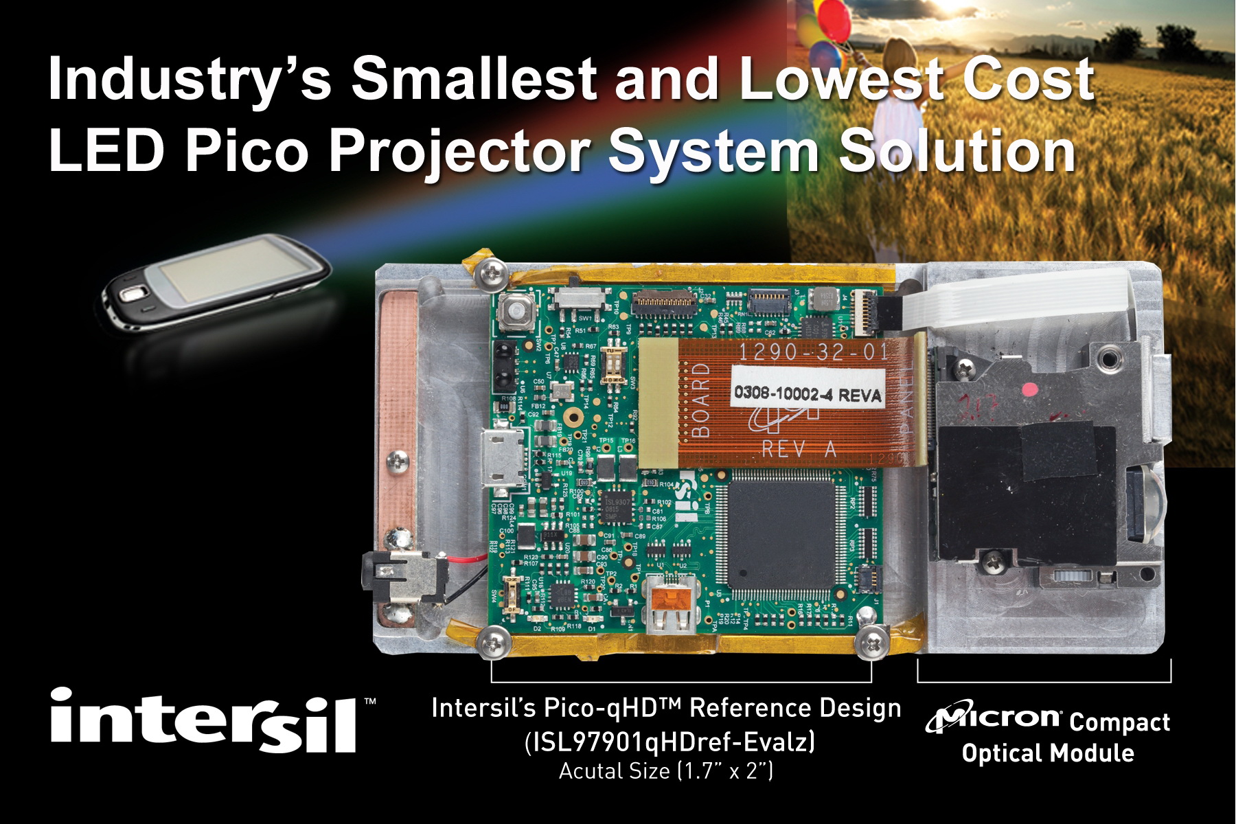 全球高性能模擬混合信號(hào)半導(dǎo)體設(shè)計(jì)和制造領(lǐng)導(dǎo)廠商Intersil公司日前天宣布,推出全球最低成本微型投影儀系統(tǒng)Pico-qHD™,以及已達(dá)到生產(chǎn)就緒階段的業(yè)內(nèi)最小的基于LED的LCoS微型投影儀解決方案。