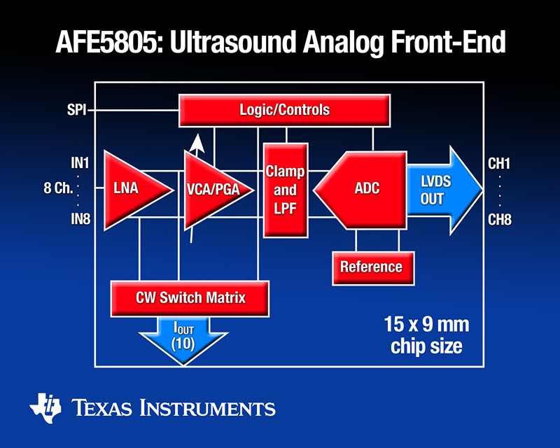 半導體工藝技術(shù)的發(fā)展讓我們能夠縮小尺寸、降低功耗和提高總性能。今天的一些AFE,例如:TI 的 AFE5808,性能提高了一倍,電路板空間減小了 94%,功耗降低了 67%。AFE 器件中更高的通道集成度讓尺寸大大減小,更少的組件數(shù)目節(jié)省了成本,而其布局也更加簡單—所有這些,最終讓系統(tǒng)擁有更高成本效益和更短產(chǎn)品上市時間成為現(xiàn)實。