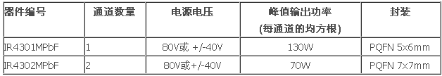 單通道IR4301M及雙通道IR4302M有助于設(shè)計(jì)師在各種通道配置內(nèi)靈活安裝立體聲放大器及進(jìn)行多通道設(shè)計(jì)。這兩個(gè)器件分別采用5×6 mm和7×7 mm PQFN封裝,有助于彰顯使用較小D類拓?fù)涞膬?yōu)勢。
