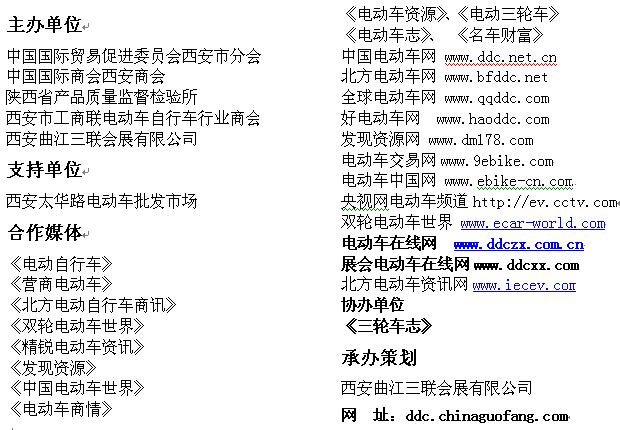 ? 5-6月份組委會(huì)將派人員到陜西、甘肅、寧夏、山西等各市、縣以及鄉(xiāng)鎮(zhèn)的電動(dòng)車經(jīng)銷商進(jìn)行展會(huì)宣傳;