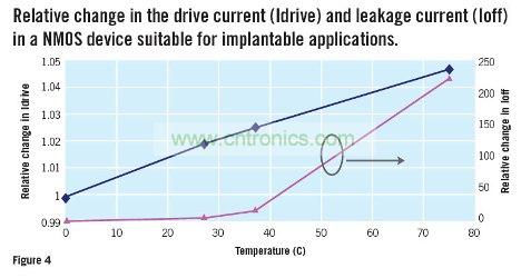 圖4:NMOS設(shè)備中漏電流與驅(qū)動(dòng)電流隨溫度變化