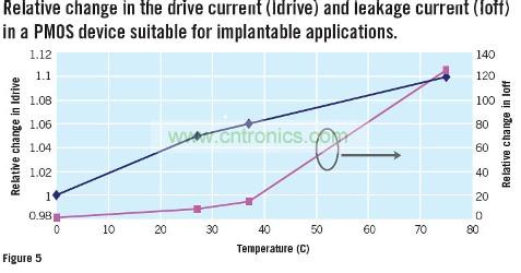 圖5:PMOS設(shè)備中漏電流與驅(qū)動(dòng)電流隨溫度變化