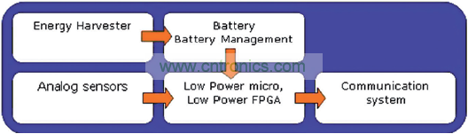 圖 2: 由環(huán)境能量供電的低功率系統(tǒng)架構(gòu)
