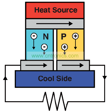 圖 3: 溫度梯度通過塞貝克效應(yīng)在電路中產(chǎn)生電壓