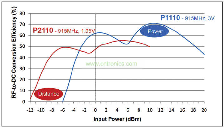 圖 4: Powercast 能量采集器的轉(zhuǎn)換效率