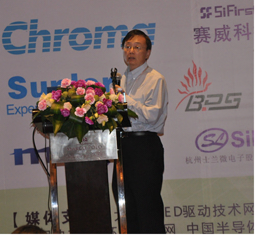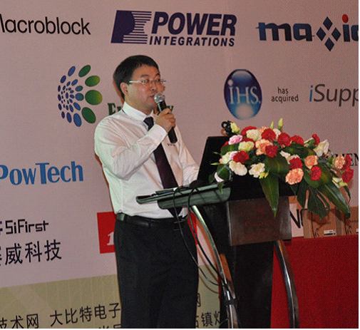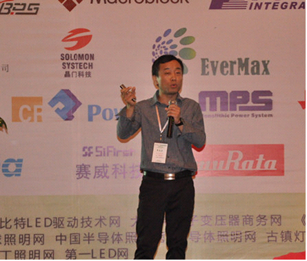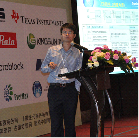 士蘭微產品應用工程經理蔡擁軍發(fā)表了《照明驅動器新產品及方案》的演講,主要從DC-DC LED驅動器和AC-DC LED驅動控制器及未來產品的趨勢作報告。為國內規(guī)模最大的集成電路芯片設計與制造一體(IDM)的企業(yè)之一,士蘭微在今年新推出了幾款LED驅動控制器產品。以非隔離AC-DC控制器為主,例如SD6900。隔離型AC-DC產品推出了SD6955。