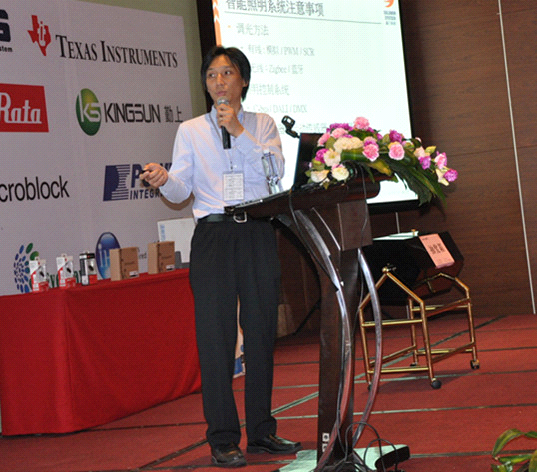 聚積科技照明產品總監(jiān)俞仲威帶來了《LED照明IC設計與電源模組應用趨勢》。首先講述LED照明發(fā)展的市場,再分析LED燈管的發(fā)展,講解不同燈具對模組設計帶來的沖擊、LED應用趨勢,最后拋出可控硅調光的議題,與現場聽眾進行了探討。
