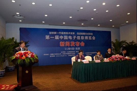 2012年11月6日下午,工業(yè)和信息化部與深圳市人民政府在北京召開(kāi)新聞發(fā)布會(huì),宣布2013年4月10日至12日在深圳市共同舉辦第一屆中國(guó)電子信息博覽會(huì)。工業(yè)和信息化部電子信息司副司長(zhǎng)、中國(guó)電子信息博覽會(huì)組委會(huì)辦公室副主任安筱鵬出席會(huì)議并介紹了籌備舉辦第一屆中國(guó)電子信息博覽會(huì)的總體情況;深圳市經(jīng)濟(jì)貿(mào)易和信息化委員會(huì)副主任、中國(guó)電子信息博覽會(huì)組委會(huì)辦公室副主任賈興東介紹了展館的總體安排;中國(guó)電子器材總公司副總經(jīng)理、中國(guó)電子信息博覽會(huì)組委會(huì)辦公室副主任兼秘書(shū)長(zhǎng)陳雯海,深圳市平板行業(yè)協(xié)會(huì)常務(wù)副會(huì)長(zhǎng)、中國(guó)電子信息博覽會(huì)組委會(huì)辦公室副主任兼副秘書(shū)長(zhǎng)許生介紹招展的進(jìn)展情況。會(huì)議由工業(yè)和信息化部辦公廳新聞處處長(zhǎng)張紅宇主持。新華社、中央人民廣播電臺(tái)、中央電視臺(tái)、中國(guó)電子報(bào)、人民郵電報(bào)、中國(guó)工業(yè)報(bào)等中央媒體和業(yè)內(nèi)媒體,以及業(yè)內(nèi)相關(guān)行業(yè)協(xié)會(huì)和重點(diǎn)企業(yè)參加了新聞發(fā)布會(huì)。