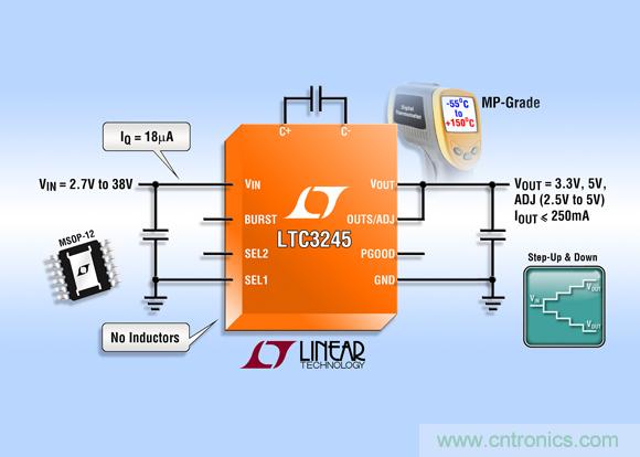 LTC3245 MP 級器件采用具有一個背部散熱襯墊的緊湊型 12 引腳 MSOP 封裝。千片批購價為每片 7.55 美元,有現(xiàn)貨供應。如需更多信息,請登錄 www.linear.com.cn/product/LTC3245。