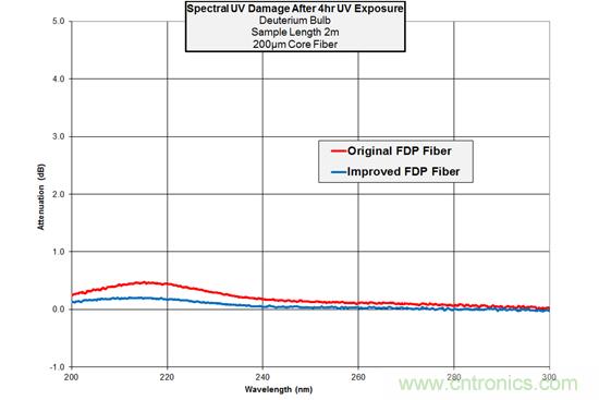 對于深紫外線領域應用,高水平紫外線輻射的影響會引起光纖傳輸退化,光纖傳輸通常在數(shù)小時后發(fā)生損耗。